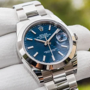 Cadran : Bleu intense avec index en or 18 ct, luminescents Chromalight